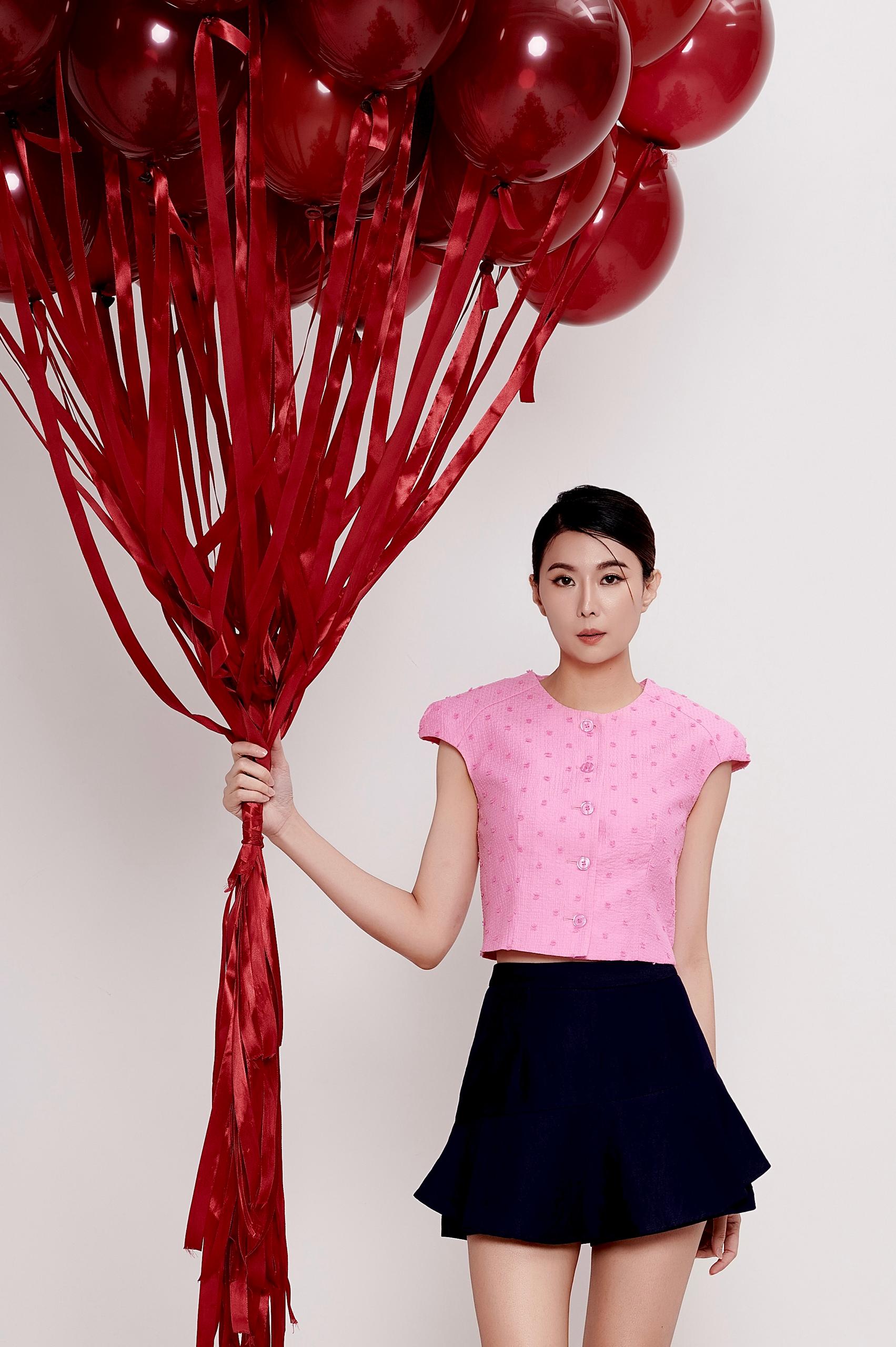 CB2645 MIA EMBD DOTTED CROP BLOUSE