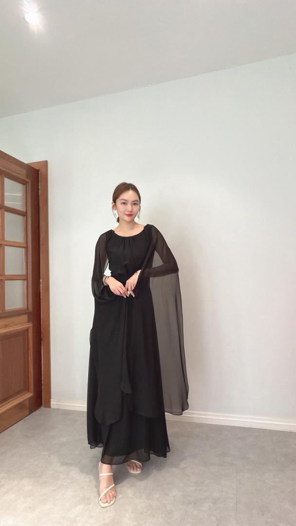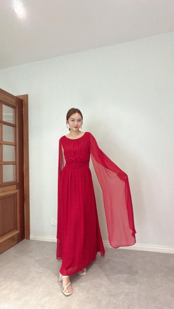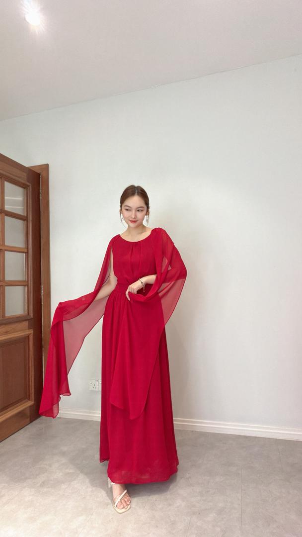 CD2120 CHIFFON SLLV WING MAXI DRESS