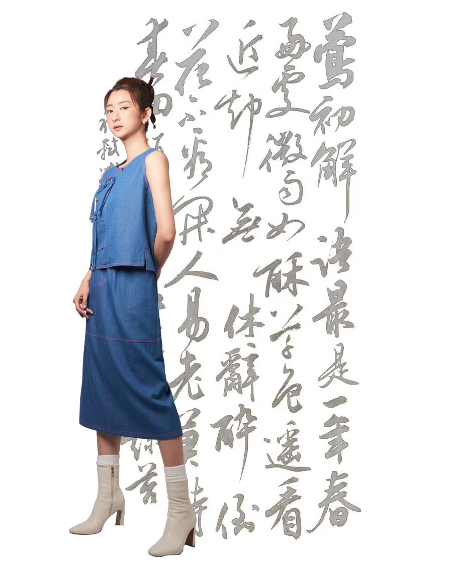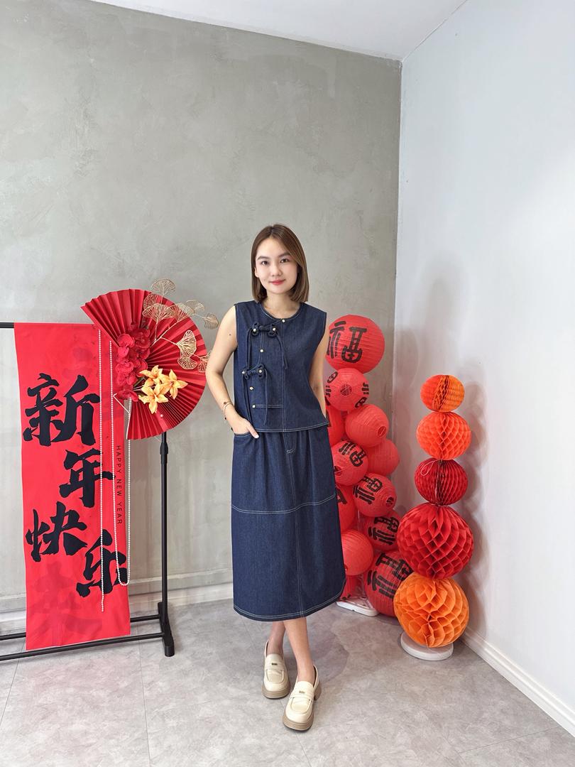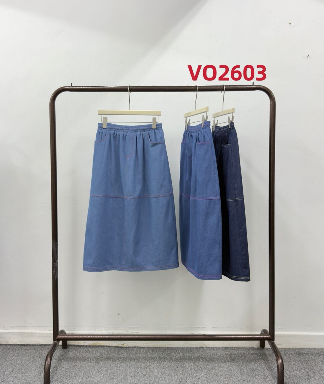VIL-S2603 SHEN CONTRASTING THREAD SKIRT
