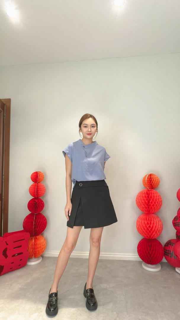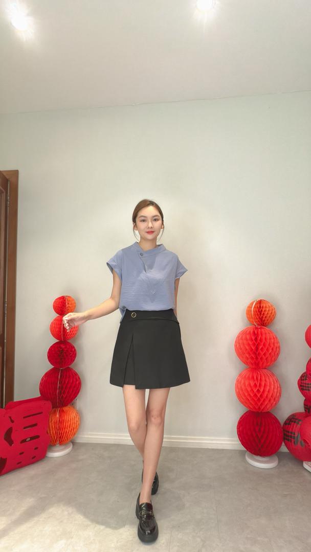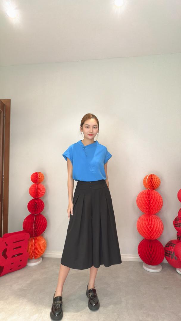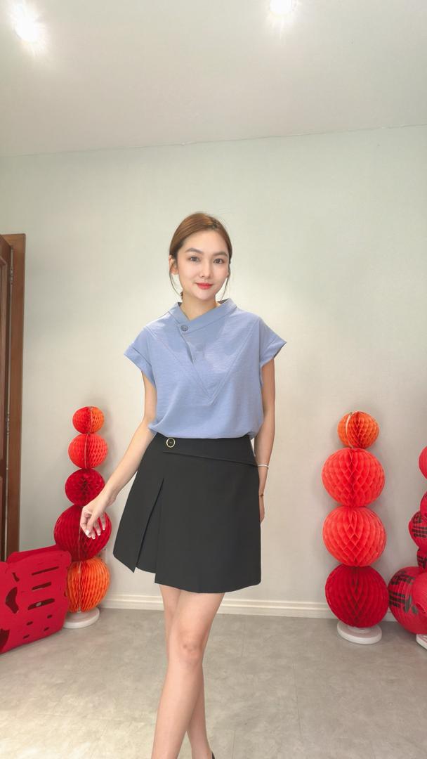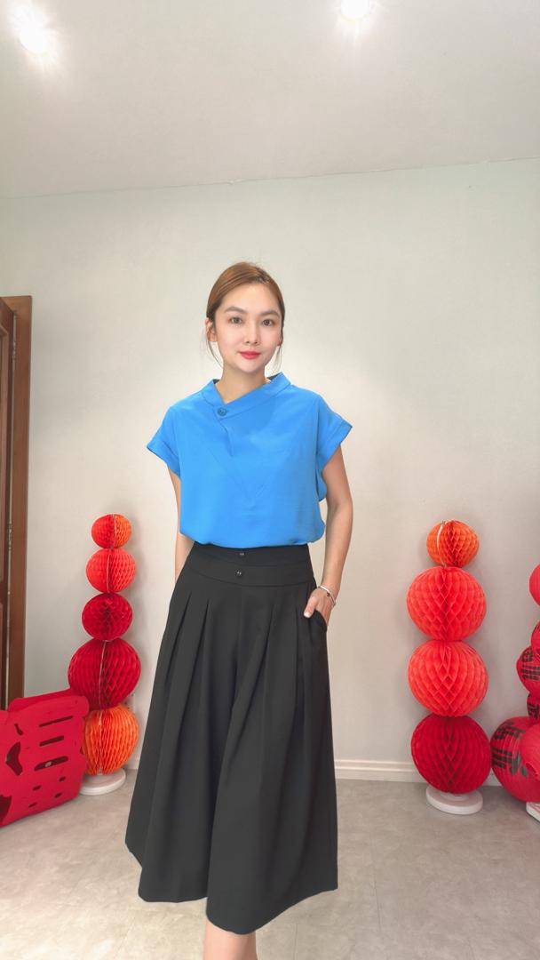 VIL-T2650 Front Flip Button Out/Sllv Blouse