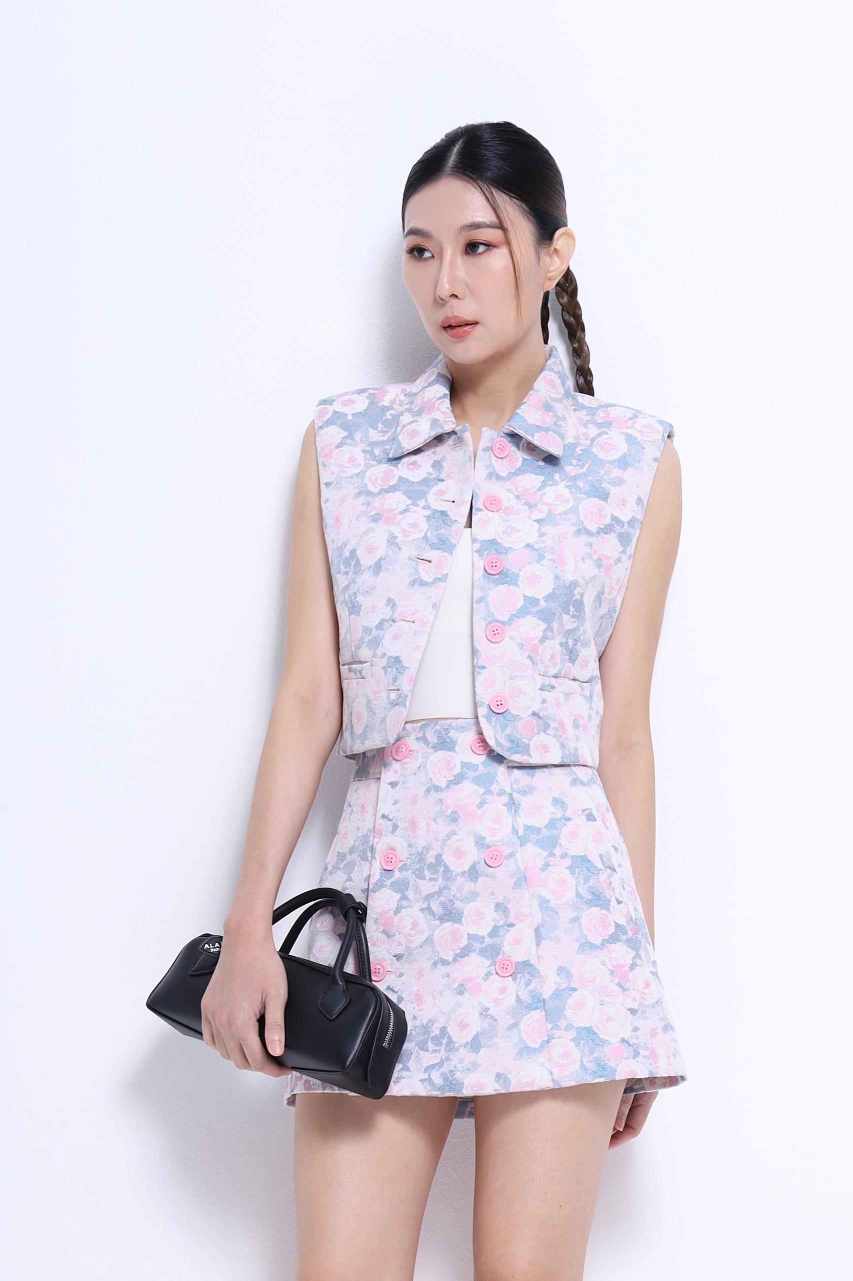 Pink Flo / L.Blue Flo : Poly Brocade