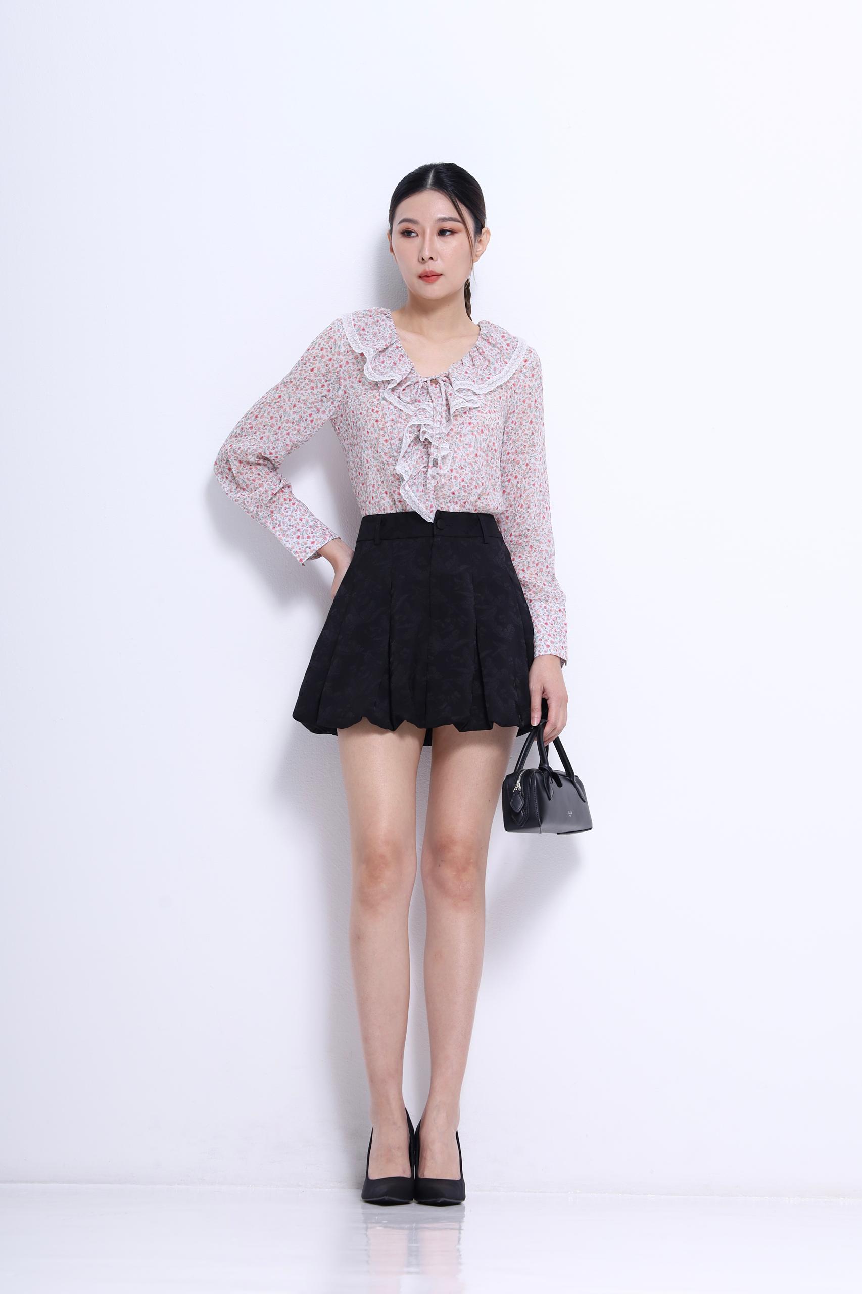 CB2676 RUFFLE LACE TRIM L/SLLV BLOUSE