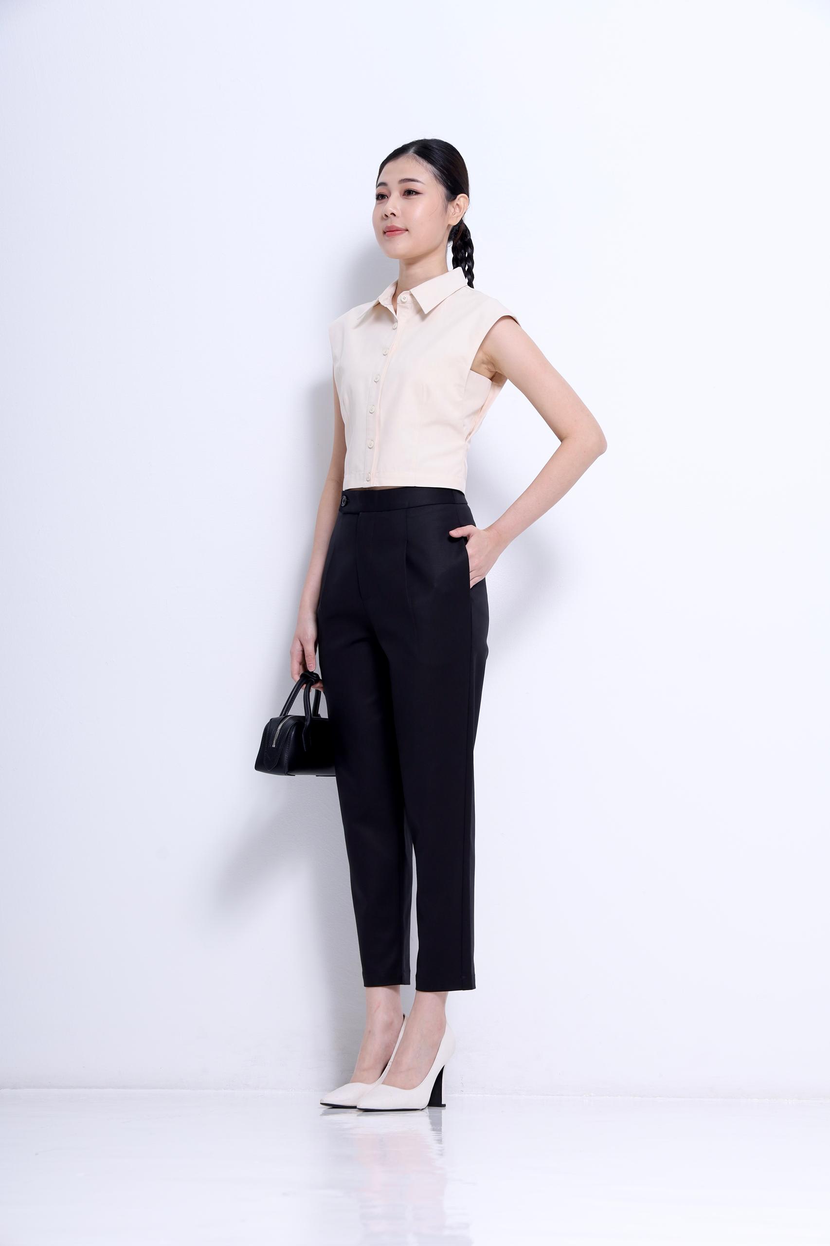 CB2680 COLLARED FRONT BUTTTON CROP TOP